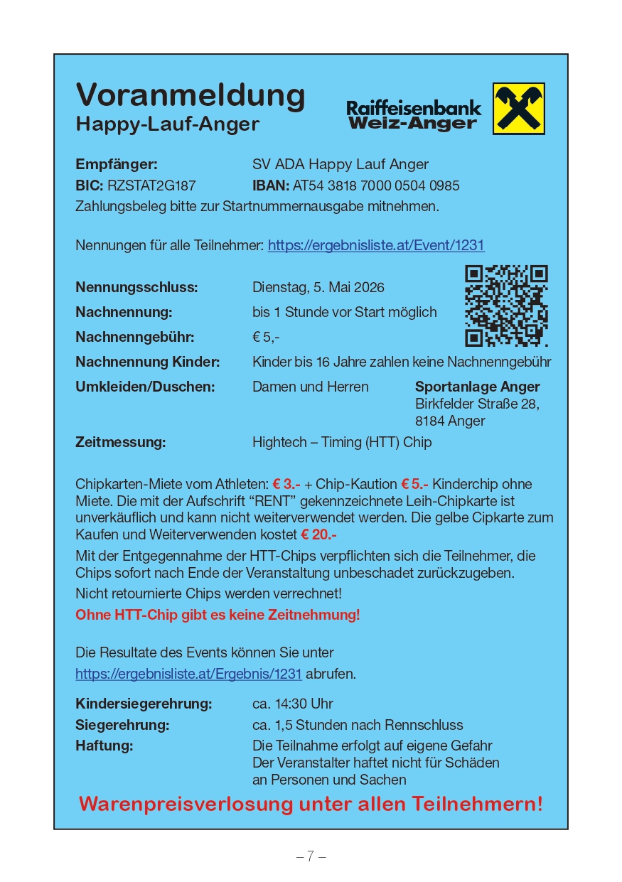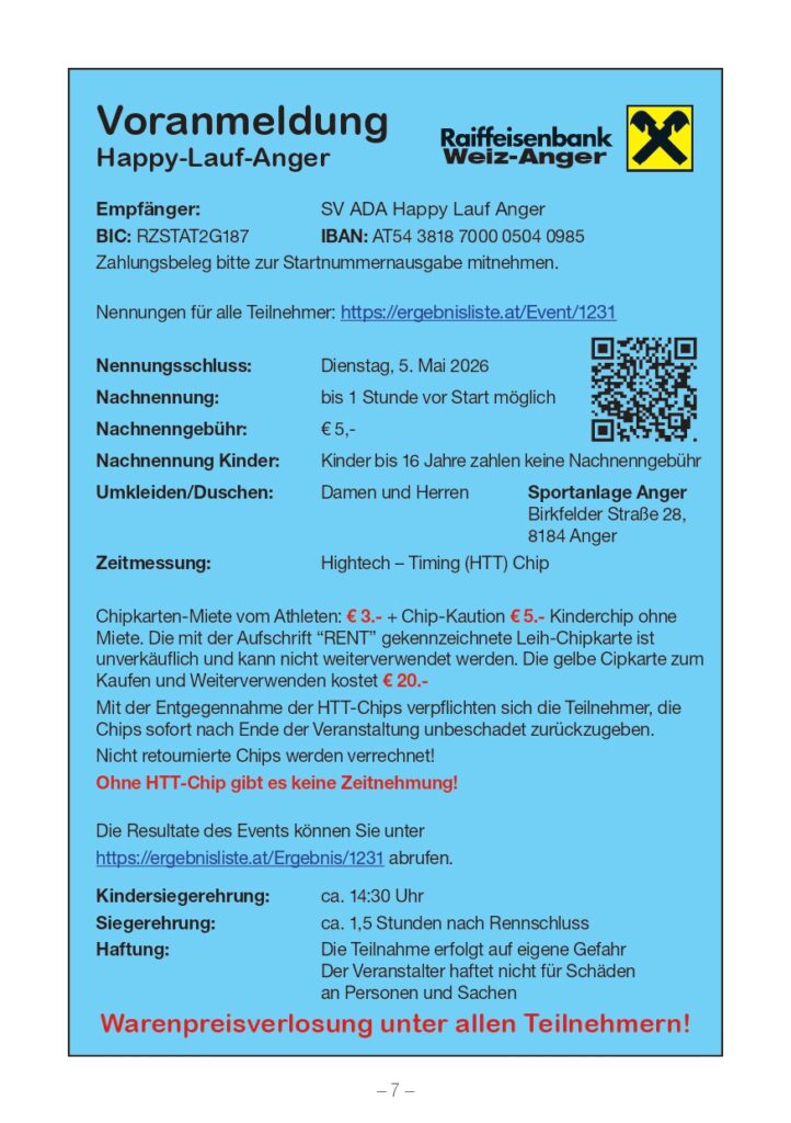 | Infos zum Lauf: | https://happy-lauf-anger.at/volkslauf |